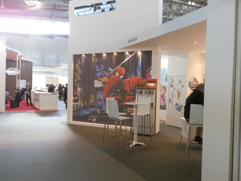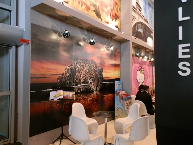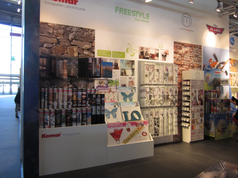 También pudimos ver el stand de Komar, donde exponían su nuevo fotomural skyline 8-913 y su fotomural de madera desgastada Vintage Wood 4-910… y tambien su clara tendencia a la decoración con fotomurales de Disney.