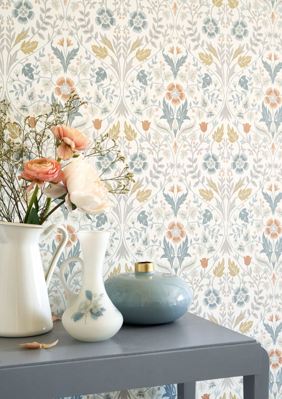 En esta colección observarás que todos los diseños están relacionados con papeles pintados florales, pero también encontrarás papales pintados lisos para que puedas combinarlos entre ellos.