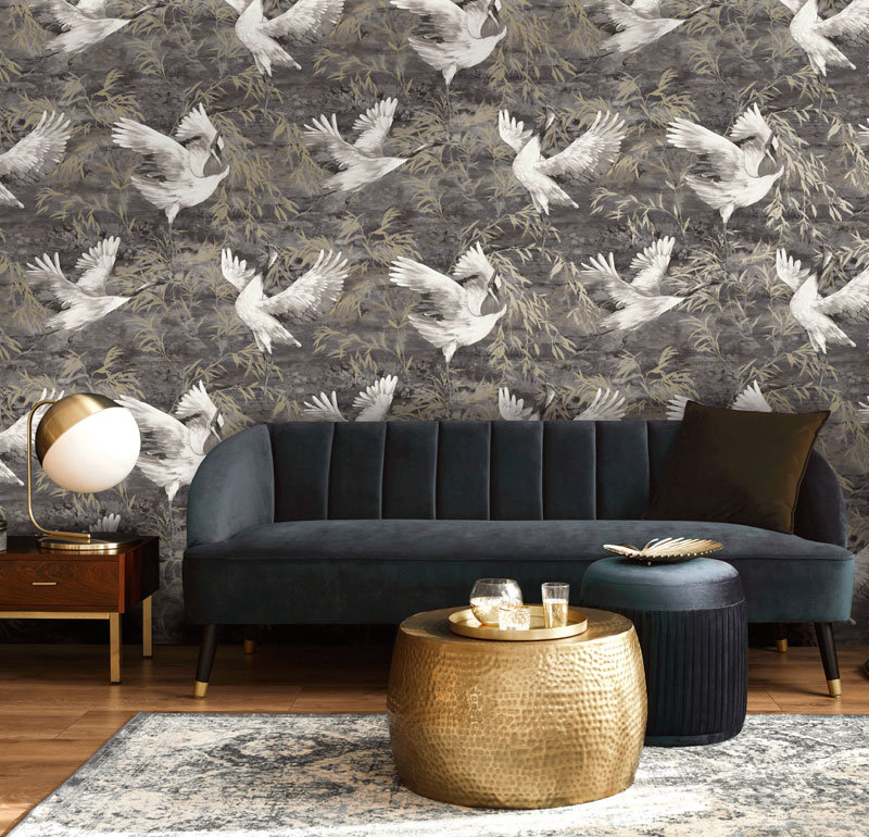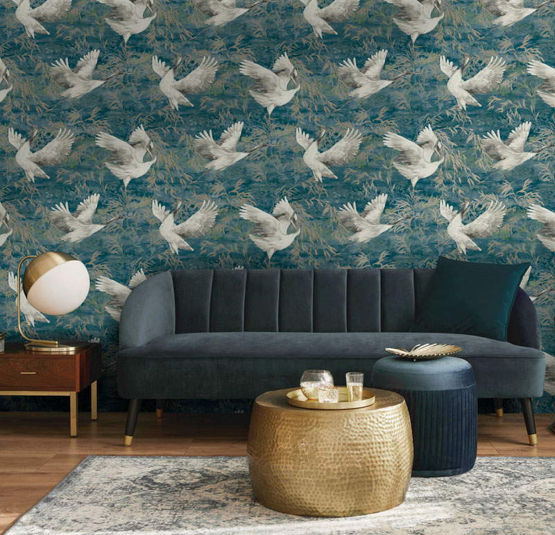 Para aquellas personas que les guste la naturaleza y quieran sentirse en un ambiente primaveral, este papel pintado lleno de aves volando con hojas que destacan por los tonos metalizados es una gran elección para darle un poco de personalidad y vida a tus estancias. Este modelo lo podrás ver en diferentes tonalidades.