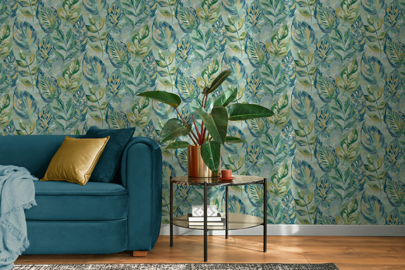 Actualmente, todo lo relacionado con lo tropical está de moda, por ello, si quieres estar a la última y tener unas paredes en tendencia el papel pintado hojas de plantas tropicales es una gran elección. Con este papel para paredes conseguirás un espacio lleno de naturaleza y podrás crear en tu estancia un ambiente exótico. Este papel pintado también contiene tonos metalizados en las hojas.