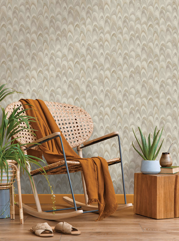 Este modelo de papel pintado vinílico hará de tus estancias un espacio más elegante, moderno y a la vez le dará movimiento a tus paredes. Es un modelo geométrico con diseños de rombos que no dejará indiferente a nadie y podrás elegir entre varias tonalidades: naranja, beige, verde… Otro dato a añadir es que este papel pintado contiene líneas metalizadas.