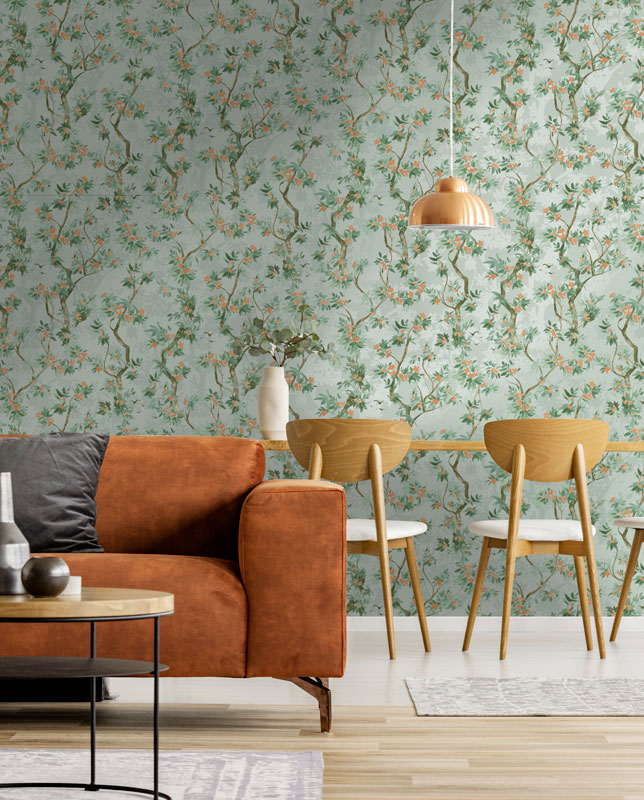 El papel pintado árbol japonés con diseños de ramas, hojas y flores creará un ambiente muy primaveral y oriental en tu hogar. También destaca por sus tonos metálicos en algunas ramas. Podrás observar este modelo en diferentes tonalidades para que puedas elegir el que más te guste.