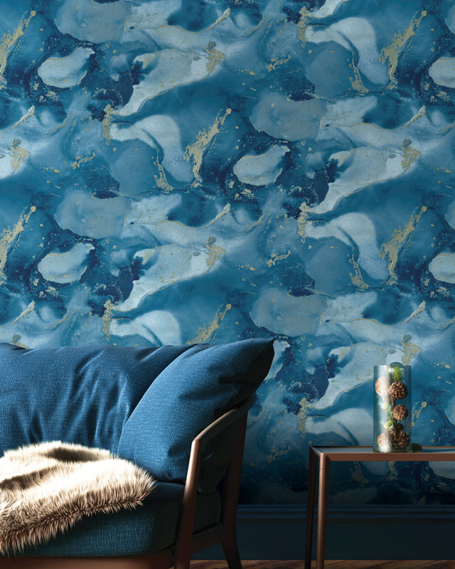 Este modelo de papel pintado abstracto es bastante llamativo y se podría decir que atrevido también, el diseño de este papel pintado contiene un efecto de ondas junto con un efecto desgastado que hará de la decoración de tu hogar un sitio muy moderno donde sea que este colocado.