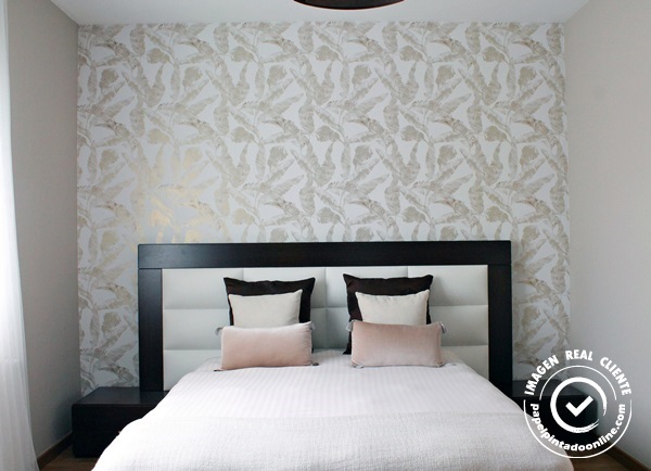 Este papel pintado con hojas le dará un ambiente de naturaleza y un estilo moderno a las paredes de tu dormitorio. Este papel pintado lo encontrarás en varias tonalidades y en específico este Papel pintado NATURALEZA 035 destaca por su acabado en dorado metalizado. Encontrarás más propuestas como estas en papel pintado hojas tropicales.