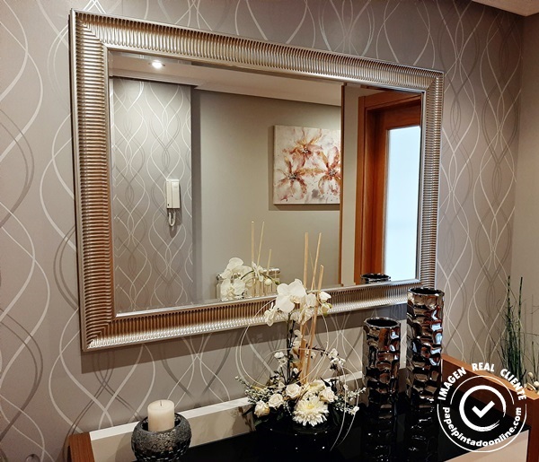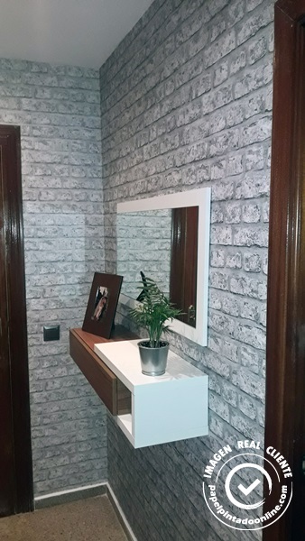 Otro papel pintado que se vende mucho y se utiliza bastante para el recibidor son los papeles pintados con imitación a materiales, en este caso a ladrillo. Como puedes ver en la siguiente imagen, el cliente que ha comprado el rollo ha colocado este papel pintado rústico en su recibidor y ha convertido la entrada principal en un espacio muy acogedor a primera vista, que seguro no dejará indiferente a sus visitas.